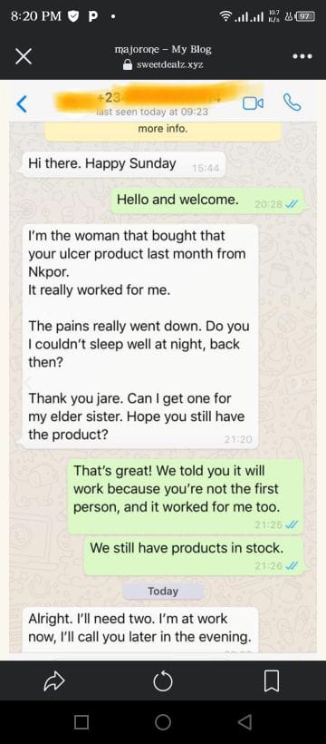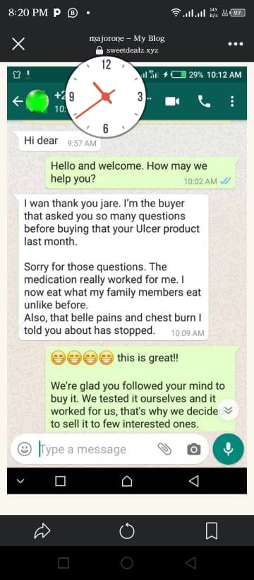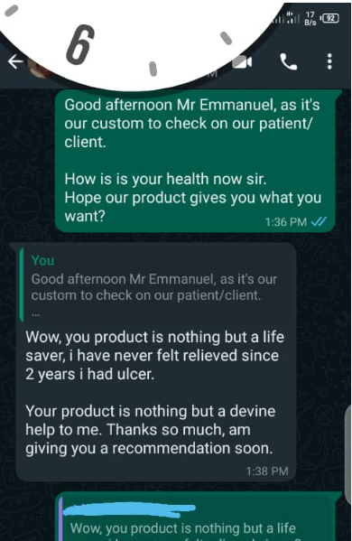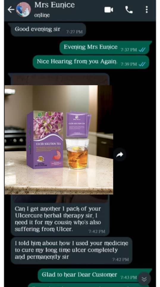 There are lots of other testimonials on our chats and email concerning this our ulcer herbal tea showing that this our tea is a life saver.